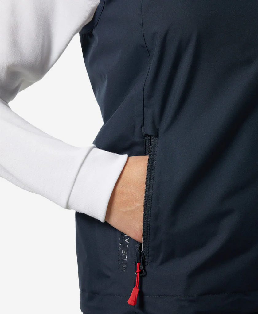 A versatile layer for sailors, our Women’s Crew Sailing Vest 2.0 offers freedom of movement while handling ropes, sails, and other essentials on deck. We designed this vest with our waterproof/breathable and windproof HELLY TECH® Protection technology. The collar and pockets have brushed fleece for extra warmth, and it’s fully seam sealed to keep water out. The vest is also mesh lined for additional comfort and breathability.